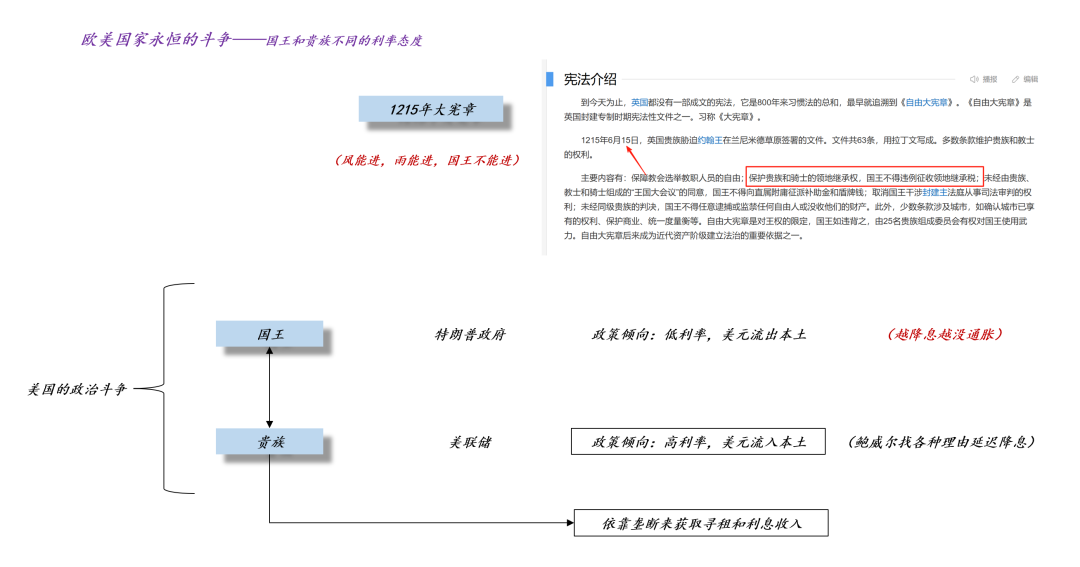 如上图所示,基于1215年大宪章的政治逻辑,我们不应该简单地把“解职美联储理事莉萨库克”视作简单的经济事件,即特朗普逼迫美联储大幅降息的谈判筹码,我们要把它视为一个极其重大的政治事件,它反映了国王对贵族集团的一次有计划有目的的进攻,正如贝森特在一次访谈中所暗示的,2008年金融危机以来美联储已经偏离了初心,不再代表美国人民利益。
