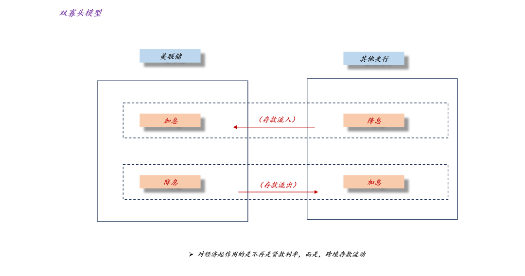 1、当美联储加息时,其他央行降息,存款流入美国;