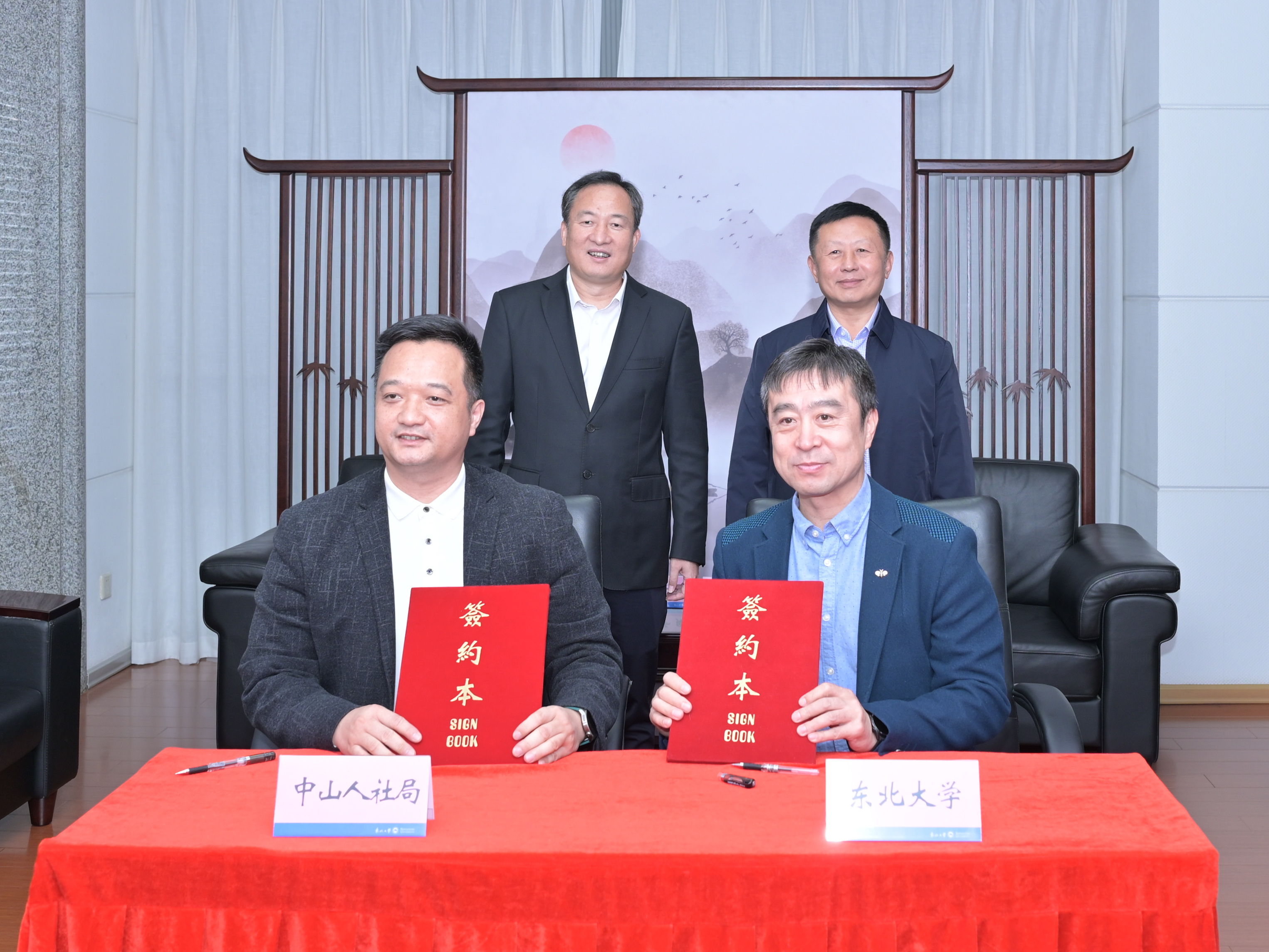 10月17日东北大学专场,中山市人力资源和社会保障局与东北大学学生指导服务中心签订合作协议。