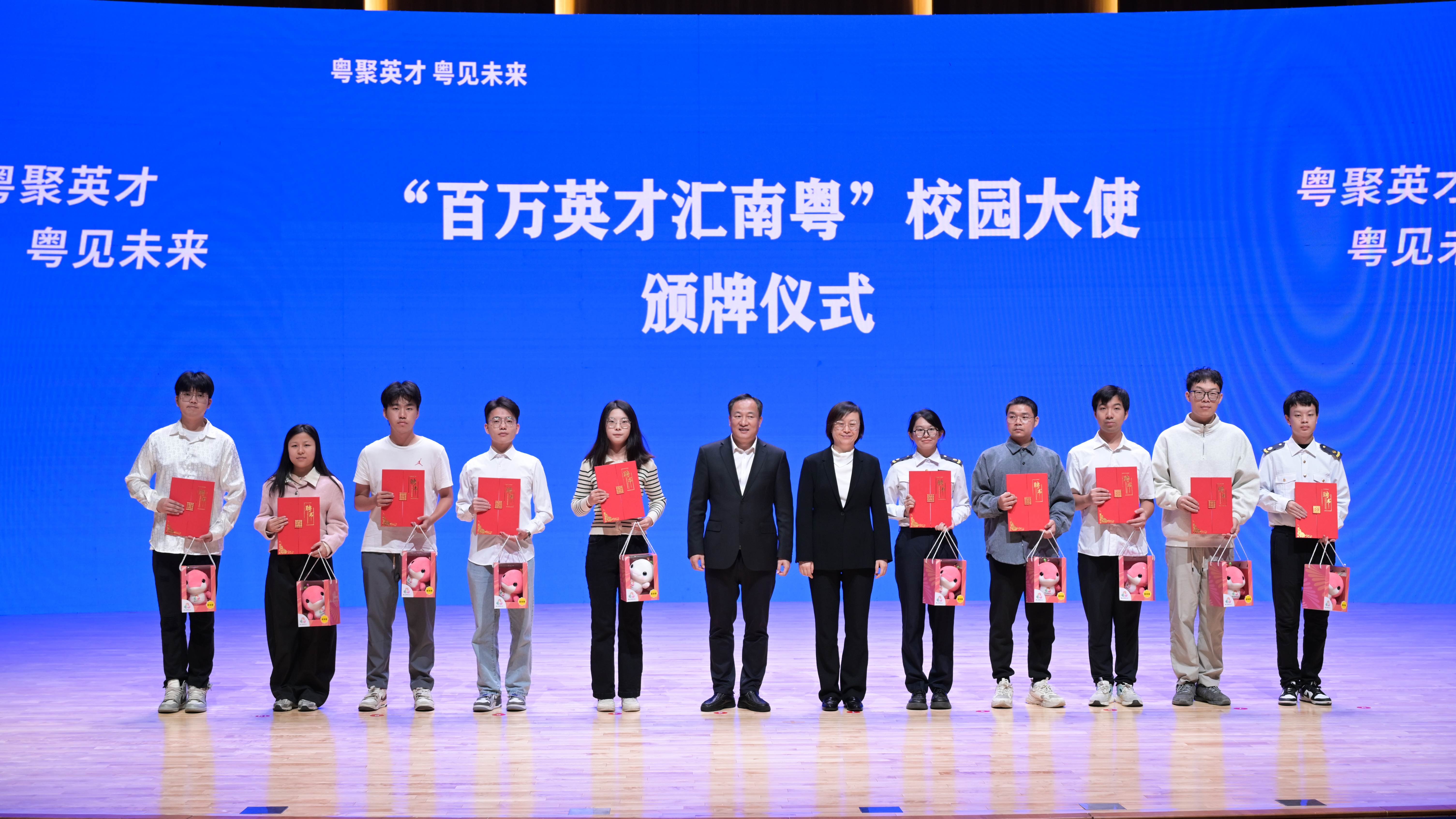 开场仪式上,主办方为10名“百万英才汇南粤”校园大使颁发聘书。见习记者 张景天 摄