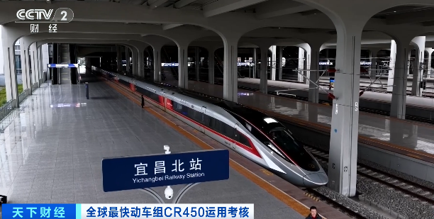 总台央视记者 郑连凯:我身后就是正在开展运用考核的CR450动车组。什么是“运用考核”,通俗地说,就是“刷里程”。因为从去年底样车下线以来,它就一直在进行各种达标考试,经过一轮又一轮的周考、月考、期中考,已经交出了时速450公里的答卷,各项指标都已经合格。按照技术要求,CR450要在指标合格的前提下,跑够60万公里,才能够载客运营。CR450每天会从宜昌北站开始,到荆门、汉川等站的近300公里的线路上折返跑。